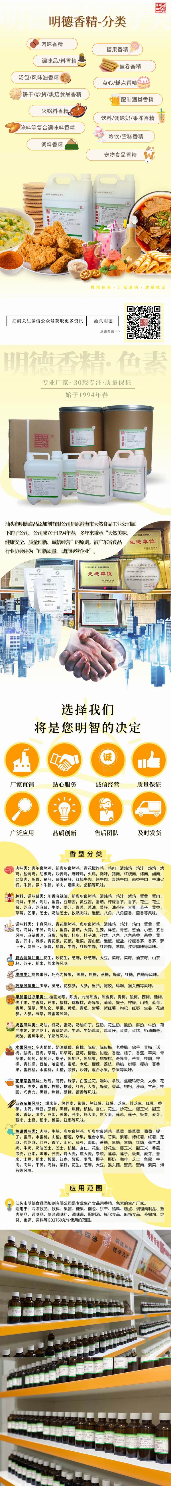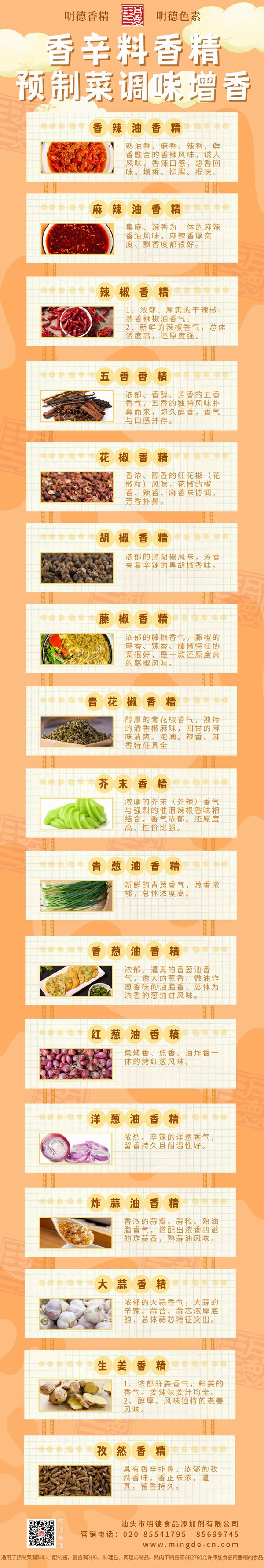 此外 明德食品添加劑 還研發(fā)了眾多香辛料風(fēng)味類香精,如小蔥、青蔥、炸蔥,如藤椒、花椒、麻椒等等,近10年來(lái)在調(diào)味料、醬料、火鍋底料多有應(yīng)用,頗受好評(píng)。諸如此類,各有特色。歡迎有興趣的廠家朋友們咨詢聯(lián)系!-